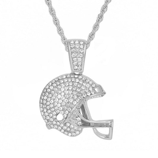 Studded Football Helmet Pendant and Chain Necklace